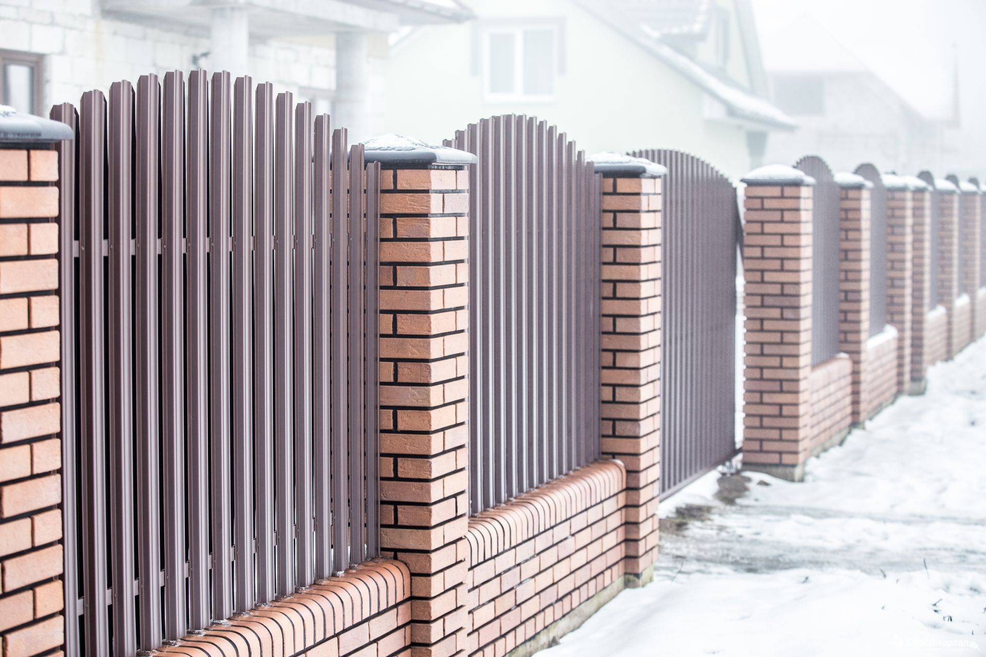 Заборы и ограждения из евроштакетника с кирпичными столбами 40 метров в Торопце