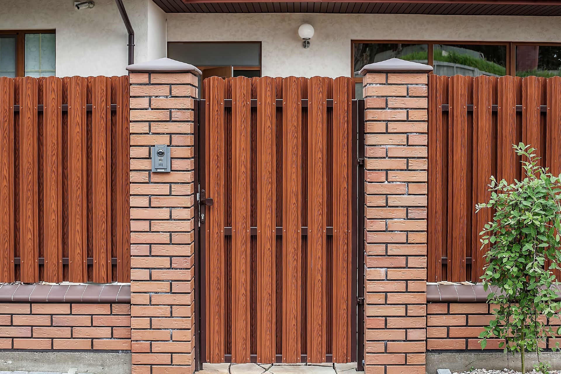 Заборы и ограждения из евроштакетника с кирпичными столбами 15 соток в Торопце